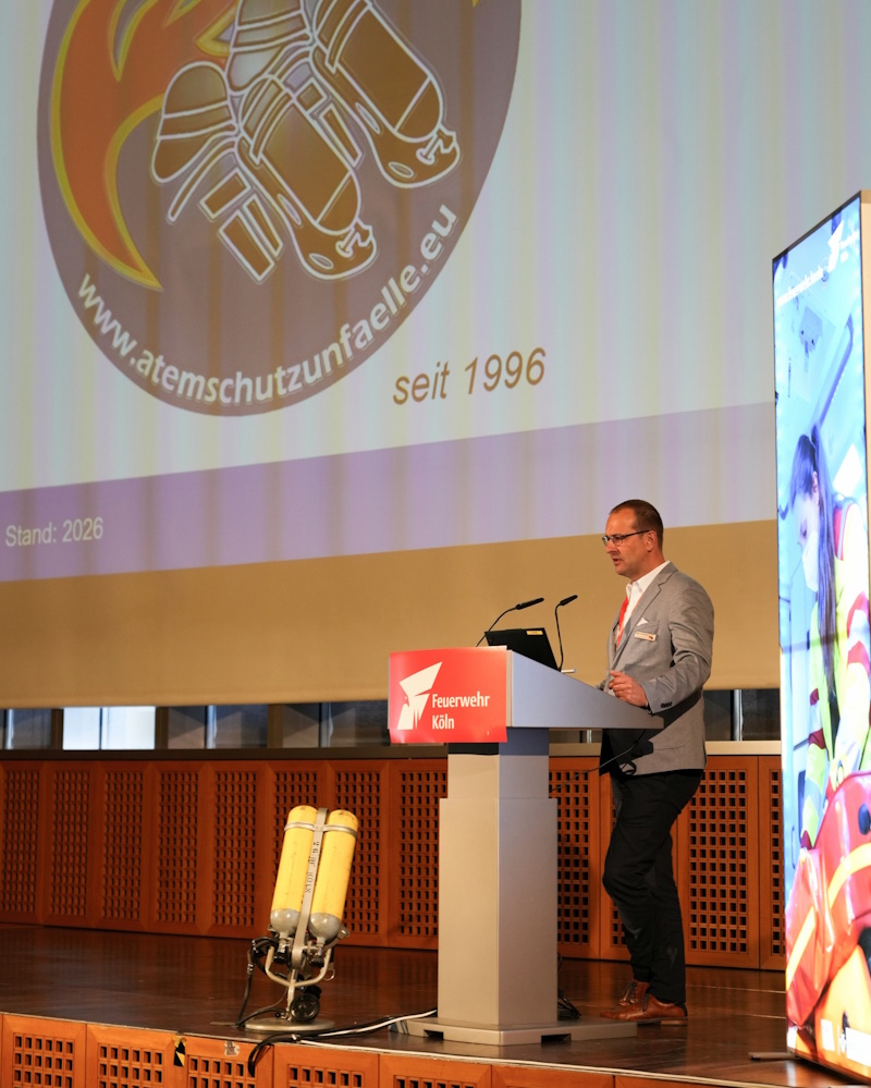 Die Etablierung von Atemschutzunfaelle.eu liegt nicht zufällig ebenfalls 30 Jahre zurück. Auch wenn die ersten Unfalleinträge vor Andreas Stampe veröffentlicht wurden, so ist der Kölner Unfallbericht doch ein bedeutender Katalysator für das Projekt gewesen. Björn Lüssenheide, als Gründer der Datenbank, wählte für seinen Vortrag den Titel „Aus Fehlern lernen – Drei Jahrzehnte Unfalldatenbank: Erkenntnisse, Irrtümer und die unterschätzte Dunkelziffer“. Er präsentierte einen beeindruckenden Rückblick und stellte einige Lehren aus Unfällen vor. Neben diesem Beitrag standen weitere spannende Themen auf dem Programm – unter anderem die Besonderheiten des Arbeitsschutzes in öffentlichen Feuerwehren, Lokalisierung von Unfallschwerpunkten in Einsatzphasen des Feuerwehreinsatzes, Gefährdungsbeurteilung Psyche der Feuerwehr Köln sowie neue technische Ansätze zur Lokalisierung von Atemschutzgeräteträgern im Innenangriff.